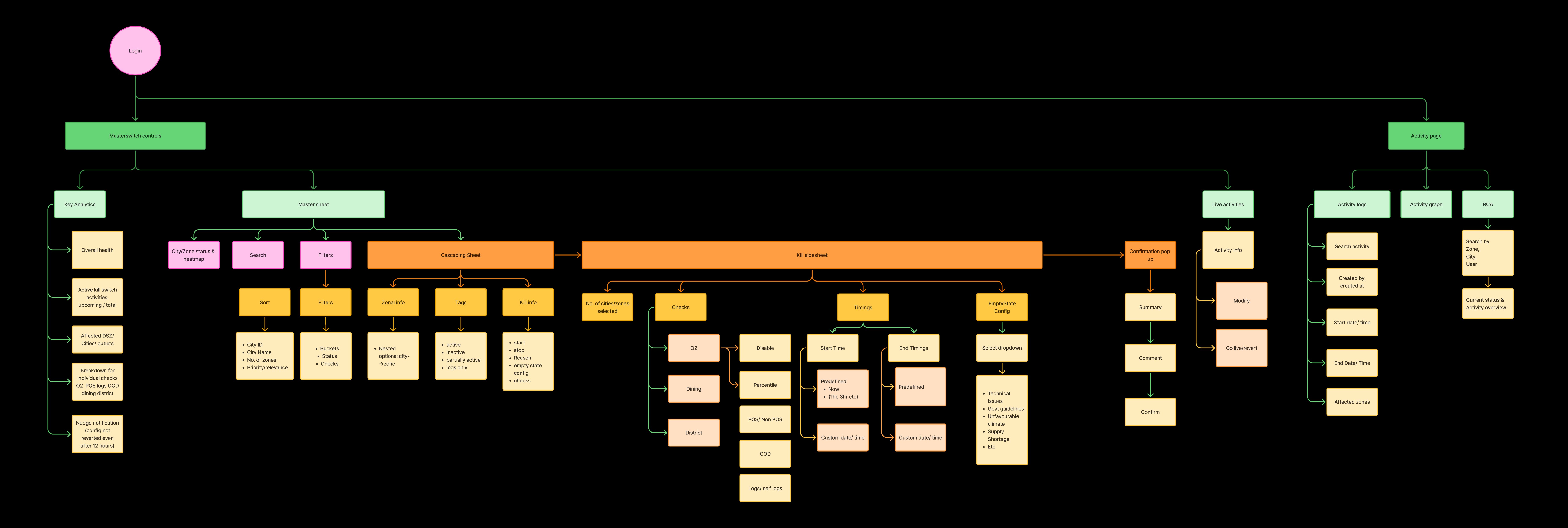 With a lean team and no dedicated PM, I led the design direction, translating raw discussions with the SRE team and the Engineering leadership into something structured and workable. We began with card sorting as a structured brain dump of possible platform controls and crisis scenarios, mapping functional possibilities beyond simple city and sub‑zone shutdowns. From there, we broke these ideas down into clear, intention‑driven flows, helping define how the system should behave under different conditions before deciding how it should look.
