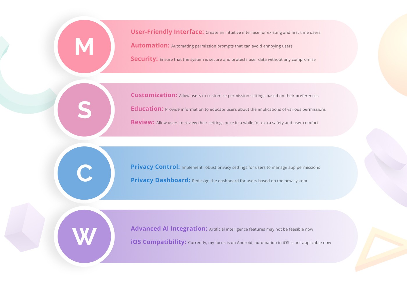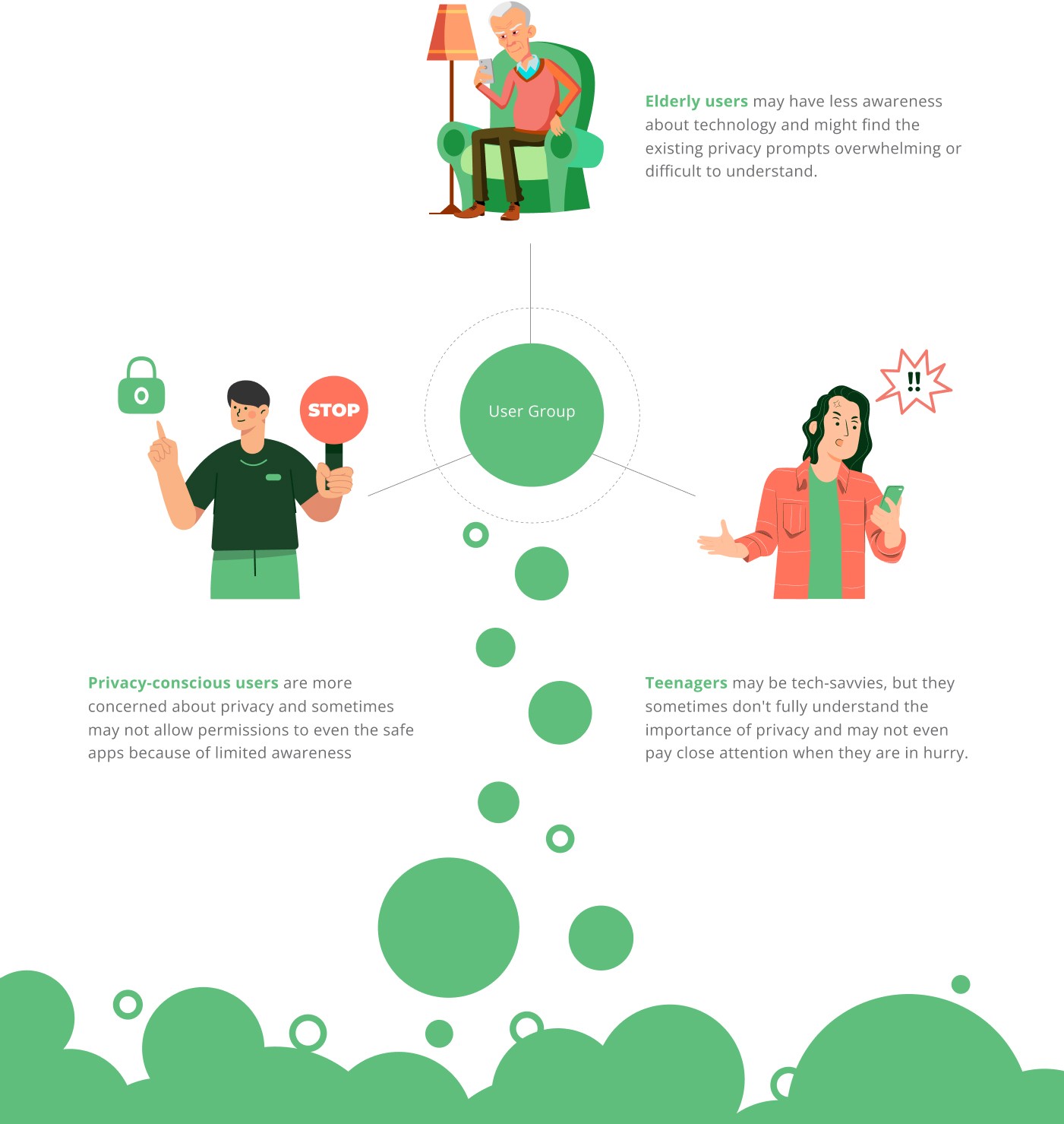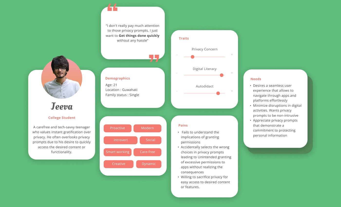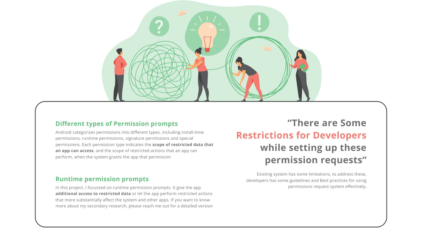 Privacy Chief is my semester thesis project at IIT Guwahati during my first year of the Master’s program. The project explores a unique approach to managing app permissions on Android, with a focus on balancing user privacy, clarity, and everyday usability. I started this project after observing how permission prompts during app installation often interrupt user flow and lead to rushed decisions. These patterns increase the risk of unintended data sharing and reduce trust in the overall mobile experience. Through Privacy Chief, I explored how Android’s permission system could become more transparent, contextual, and user-friendly without compromising security or app functionality. I focused on simplifying permission language, reducing cognitive load, and giving users more control through clearer explanations, ethical defaults, and personalization.